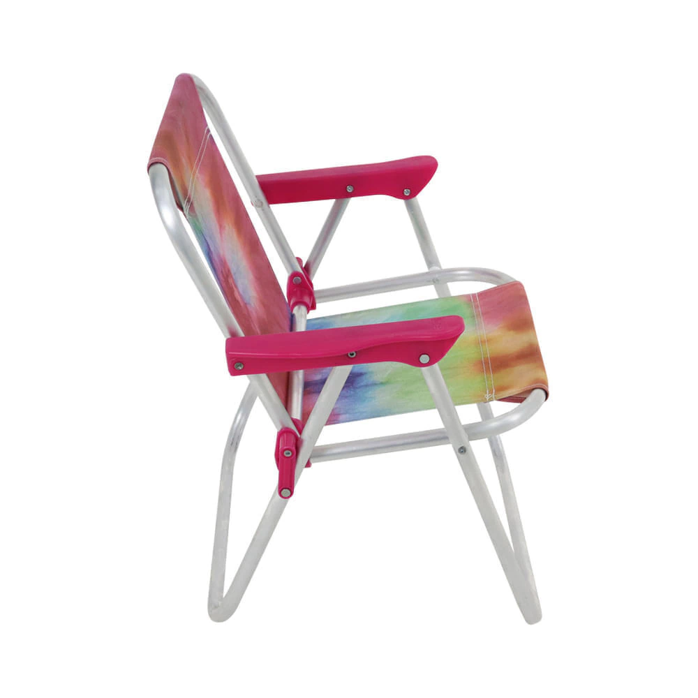 Leve, dobravel e resistente, e perfeita para praia, piscina, parque ou quintal. Feita com estrutura em aluminio e assento em 67% algodao e 33% poliester, garante conforto e durabilidade. Os apoios de braco em polipropileno colorido tornam a cadeira segura e divertida. Compacta e pratica, as criancas podem carrega-la sozinhas ou os pais transporta-la facilmente.